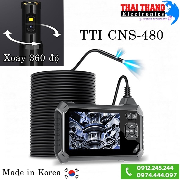 Camera nội soi xoay 360 độ TTI CNS-480 thuộc dòng sản phẩm nội soi công nghiệp đến từ hãng TTI Hàn Quốc, máy được trang bị hệ thống đầu dò xoay 360° dễ dàng quan sát bên trong vật thể một cách chi tiết nhất. Cảm biến camera thế hệ mới kết hợp đèn trợ sáng mang lại hình ảnh hình ảnh sắc nét, tươi sáng cùng độ tương phản cao. Sản phẩm sử dụng kiểm tra, sửa chữa máy, buồng đốt động cơ, đường ống cơ khí, ống nước sinh hoạt, điện lạnh,….