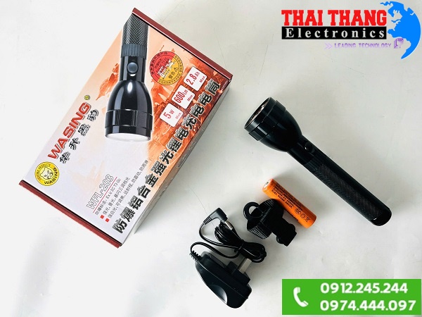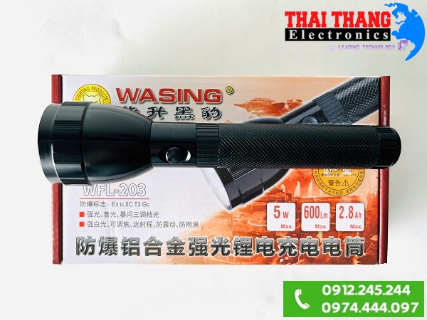 Đèn pin cầm tay Wasing WFL-203 là dòng đèn đến từ thương hiệu nổi tiếng của Đài Loan, đèn sở hữu thiết kế nhỏ gọn, độ sáng mạnh, hoạt động ổn định trong mọi điều kiện thời tiết và đặc biệt thiết kế đạt chuẩn chống cháy nổ cho phép đèn sử dụng trong môi trường dễ xảy ra hỏa hoạn. Sản phẩm sử dụng soi chiếu cá nhân, an ninh, kho xăng dầu, cây xăng, cơ sở buôn bán gas, điện lực, nhà máy,….